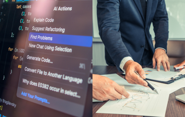システム開発では、要件に応じたコーディングをAIが自動作成することで、ミスの軽減や人手不足の解消につながっています。