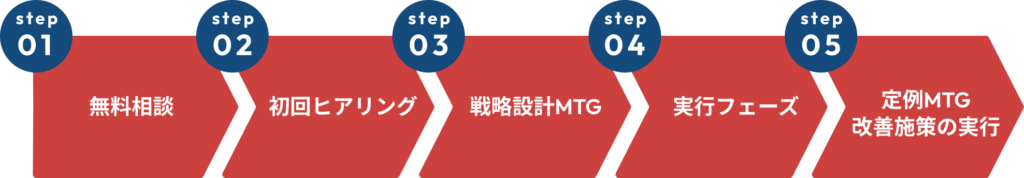 最短で1週間後からスタート可能です。しっかりと結果を出していきたいので、事業内容によっては入念なリサーチが必要となる場合もあります。 スタート時期につきましては無料相談の際にお伝えさせていただきます。