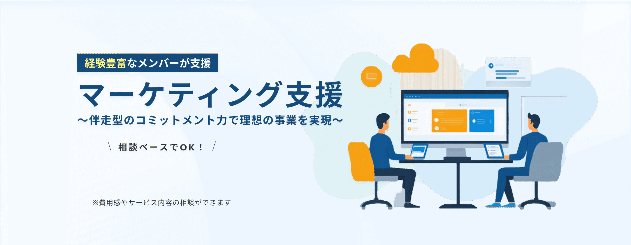 弊社のサービスは、スポットのサービス提供から丸っとサポートするサービスまで幅広くあります。 まずはお試しで小さく試すことも可能です。