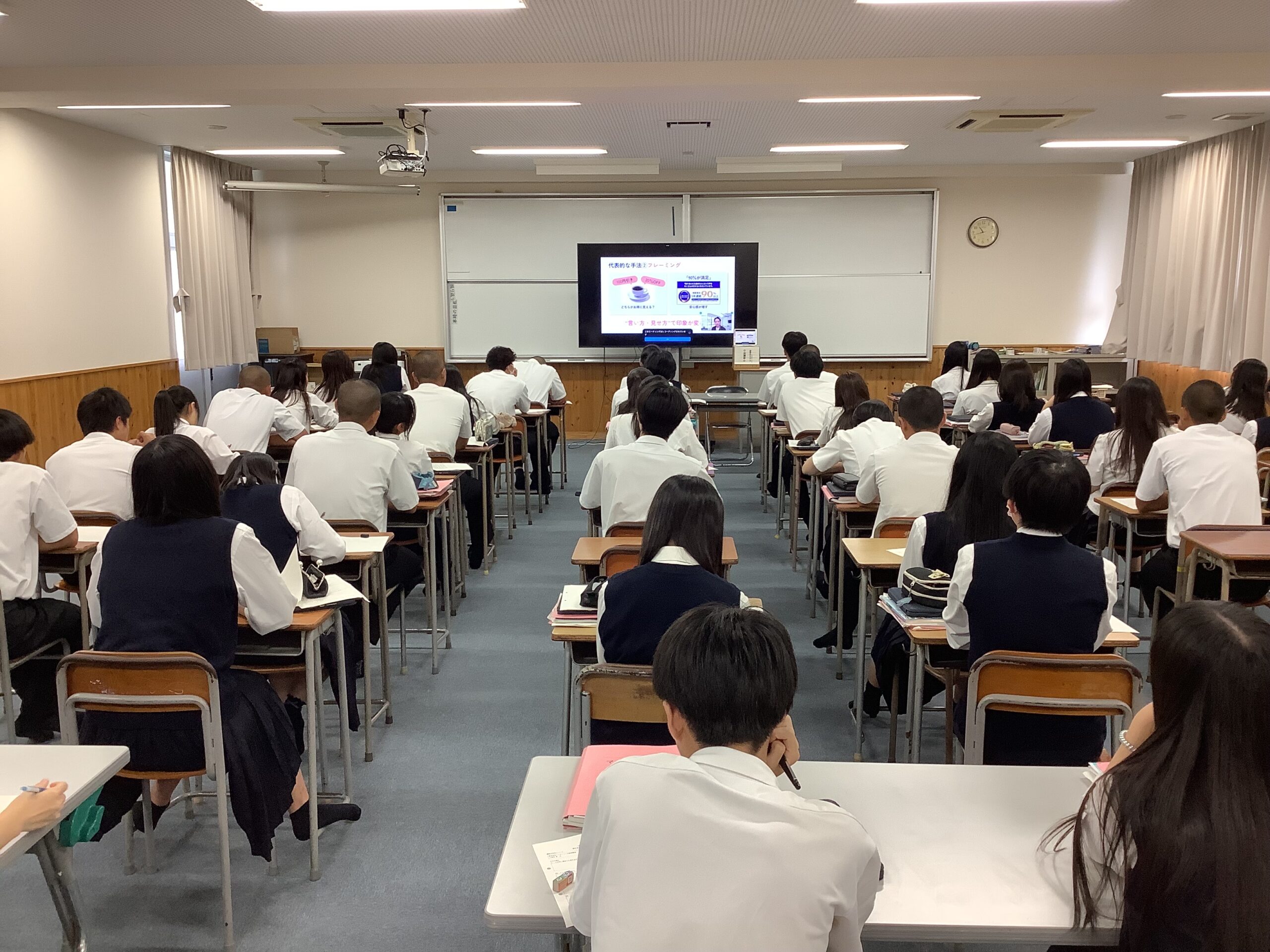 2024年9月29日、大分県立別府翔青高等学校にて、2年生53名を対象にオンライン授業「マーケティングアイデア【売れるしくみづくり】」を実施しました。授業では、株式会社メイカヒット代表の久保田が講師を務め、消費者行動の理解とナッジ理論をテーマに、「人が思わず選んでしまう仕組み」について実例を交えながら解説しました。